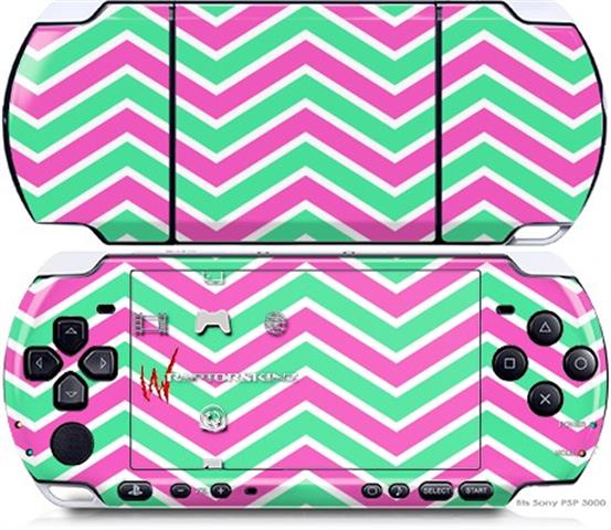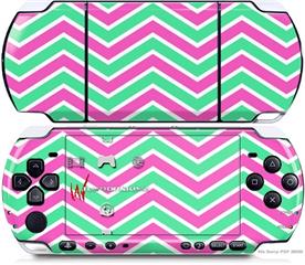 Sony PSP 3000 Decal Style Skin - Zig Zag Teal Green and Pink