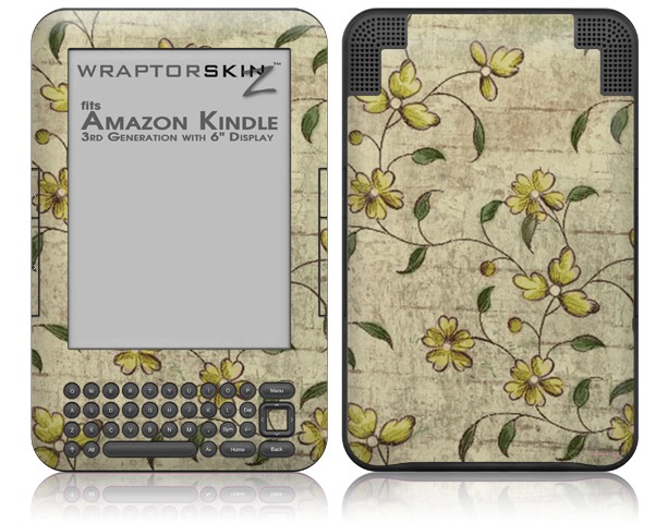 Flowers and Berries Yellow - Decal Style Skin fits Amazon Kindle 3 Keyboard (with 6 inch display)