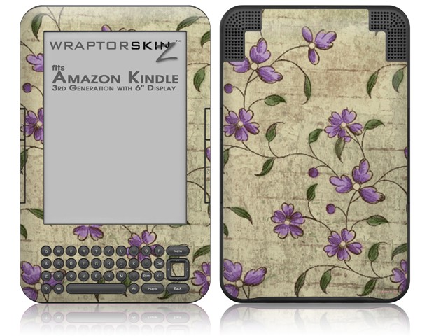 Flowers and Berries Purple - Decal Style Skin fits Amazon Kindle 3 Keyboard (with 6 inch display)