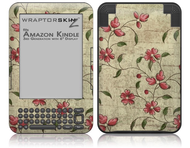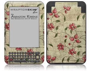 Flowers and Berries Red - Decal Style Skin fits Amazon Kindle 3 Keyboard (with 6 inch display)