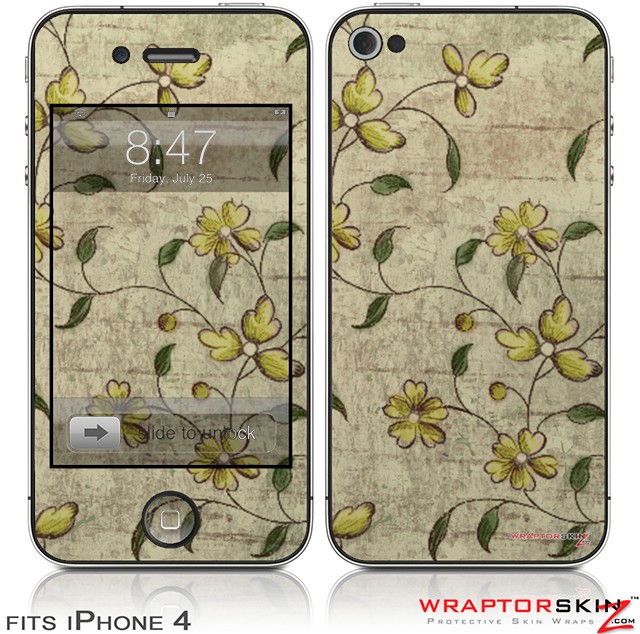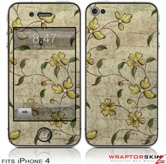 iPhone 4 Skin Flowers and Berries Yellow