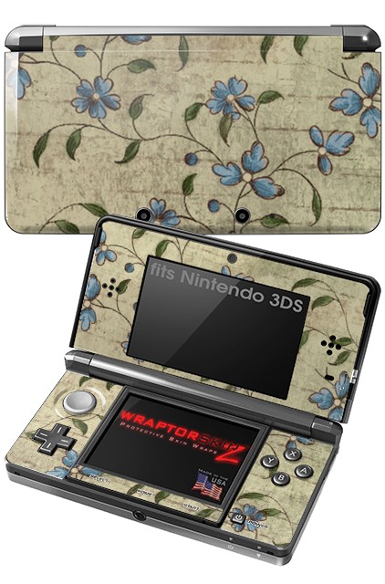 Nintendo 3DS Decal Style Skin - Flowers and Berries Blue