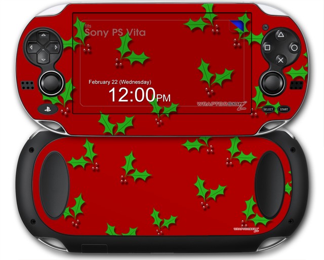 Christmas Holly Leaves on Red - Decal Style Skin fits Sony PS Vita