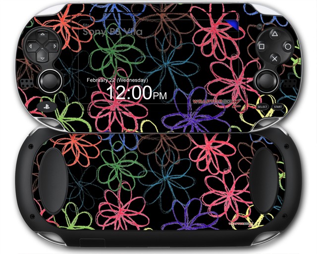 Kearas Flowers on Black - Decal Style Skin fits Sony PS Vita