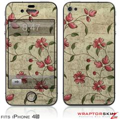 iPhone 4S Skin Flowers and Berries Red