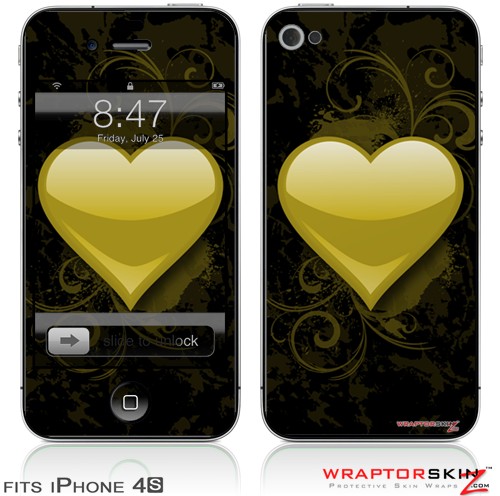 iPhone 4S Skin Glass Heart Grunge Yellow