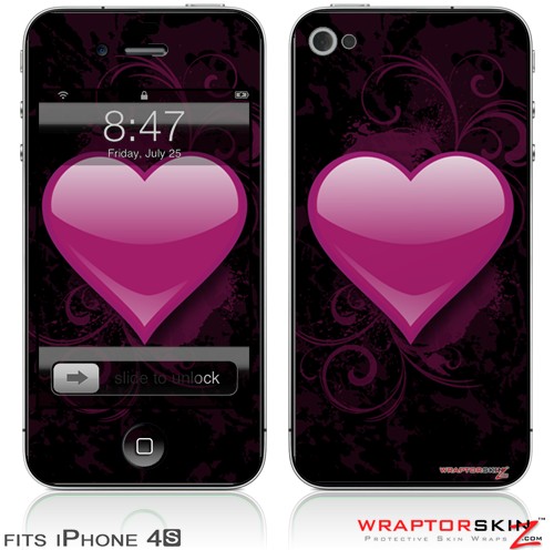 iPhone 4S Skin Glass Heart Grunge Hot Pink