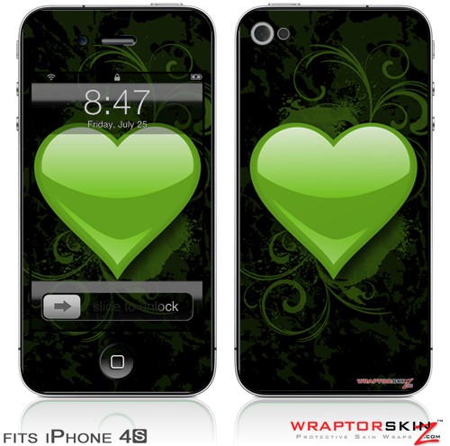 iPhone 4S Skin Glass Heart Grunge Green