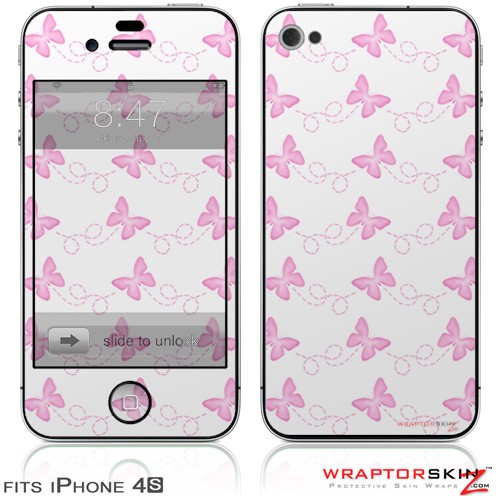 iPhone 4S Skin Pastel Butterflies Pink on White