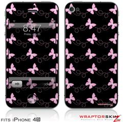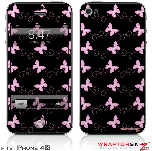 iPhone 4S Skin Pastel Butterflies Pink on Black