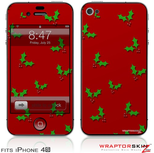 iPhone 4S Skin Christmas Holly Leaves on Red