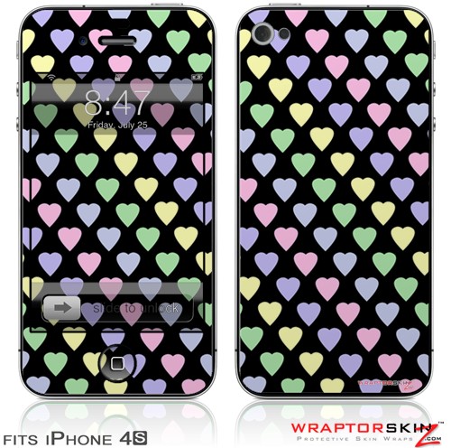 iPhone 4S Skin Pastel Hearts on Black