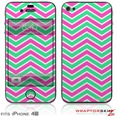 iPhone 4S Skin Zig Zag Teal Green and Pink
