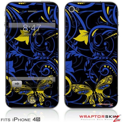 iPhone 4S Skin Twisted Garden Blue and Yellow