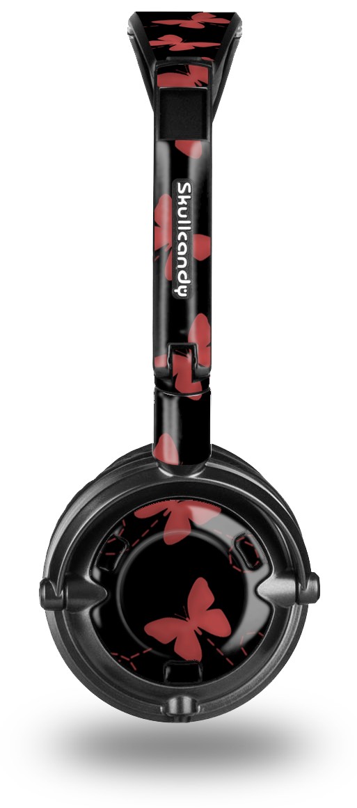 Pastel Butterflies Red on Black Decal Style Skin fits Skullcandy Lowrider Headphones (HEADPHONES SOLD SEPARATELY)