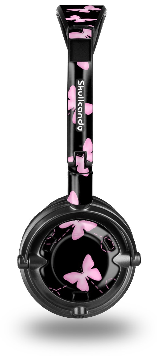 Pastel Butterflies Pink on Black Decal Style Skin fits Skullcandy Lowrider Headphones (HEADPHONES SOLD SEPARATELY)