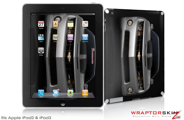 iPad Skin 2010 Chevy Camaro Silver - Black Stripes on Black (fits iPad 2 through iPad 4)