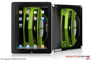 iPad Skin 2010 Chevy Camaro Green - White Stripes on Black (fits iPad 2 through iPad 4)