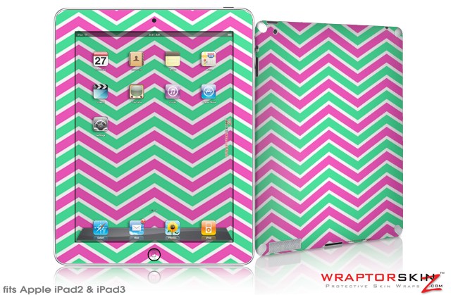 iPad Skin Zig Zag Teal Green and Pink (fits iPad 2 through iPad 4)