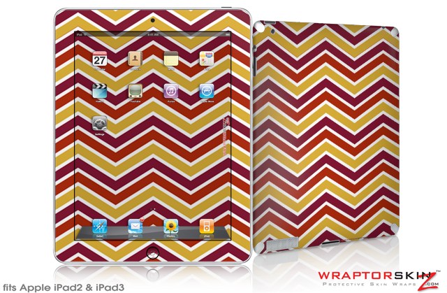 iPad Skin Zig Zag Yellow Burgundy Orange (fits iPad 2 through iPad 4)