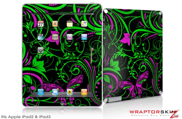 iPad Skin Twisted Garden Green and Hot Pink (fits iPad 2 through iPad 4)