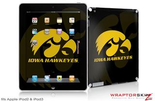 iPad Skin Iowa Hawkeyes Tigerhawk Gold on Black (fits iPad 2 through iPad 4)