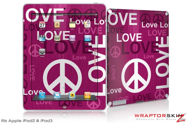 iPad Skin Love and Peace Hot Pink (fits iPad 2 through iPad 4)