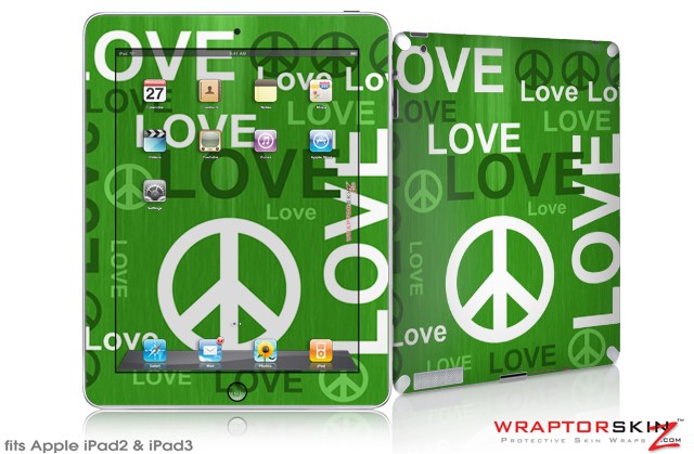 iPad Skin Love and Peace Green (fits iPad 2 through iPad 4)