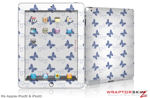 iPad Skin Pastel Butterflies Blue on White (fits iPad 2 through iPad 4)