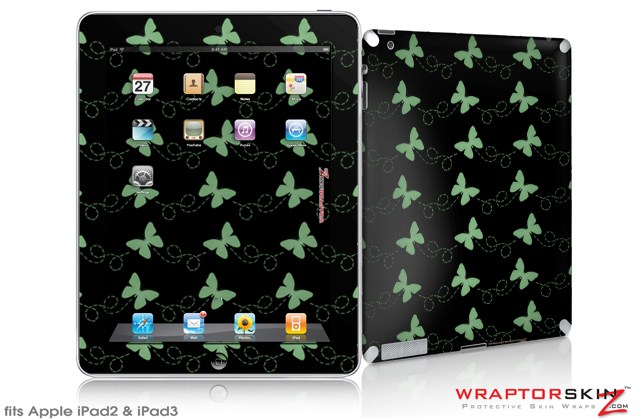 iPad Skin Pastel Butterflies Green on Black (fits iPad 2 through iPad 4)