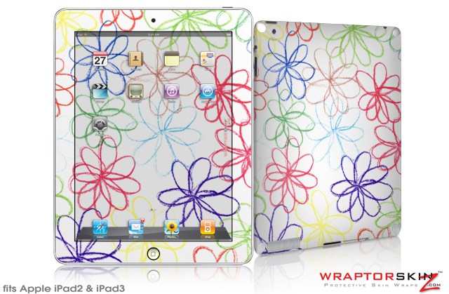 iPad Skin Kearas Flowers on White (fits iPad 2 through iPad 4)