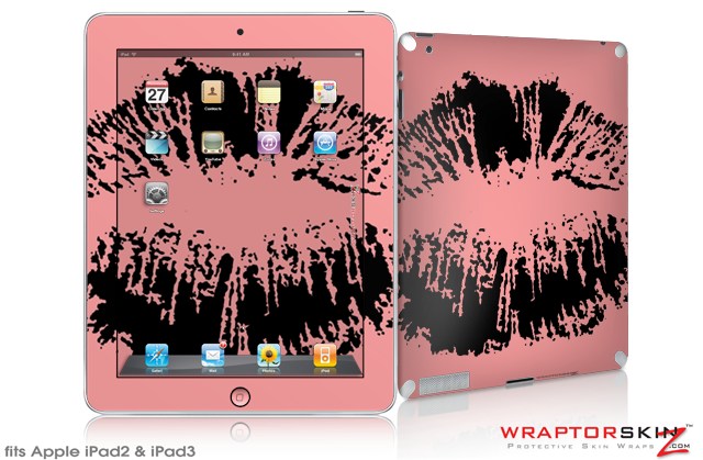 iPad Skin Big Kiss Lips Black on Pink (fits iPad 2 through iPad 4)