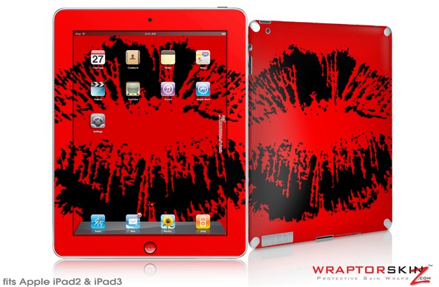 iPad Skin Big Kiss Lips Black on Red (fits iPad 2 through iPad 4)