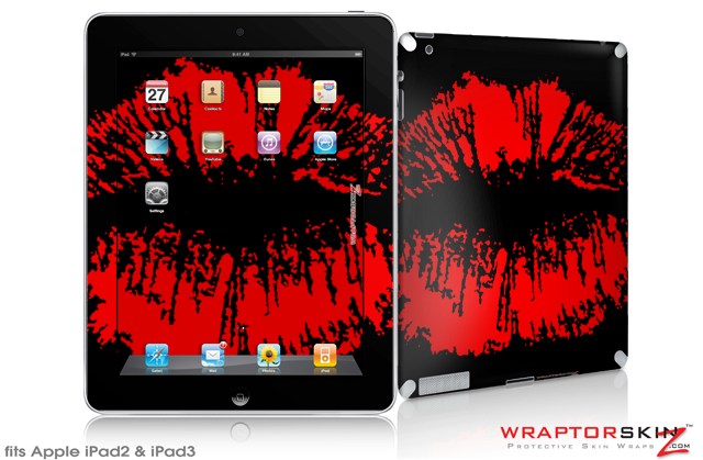 iPad Skin Big Kiss Lips Red on Black (fits iPad 2 through iPad 4)