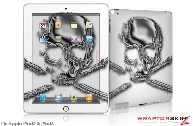 iPad Skin Chrome Skull on White (fits iPad 2 through iPad 4)