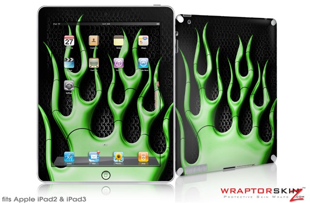 iPad Skin Metal Flames Green (fits iPad 2 through iPad 4)