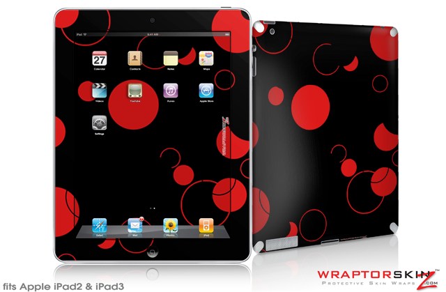 iPad Skin Lots of Dots Red on Black (fits iPad 2 through iPad 4)