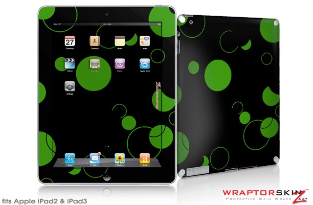 iPad Skin Lots of Dots Green on Black (fits iPad 2 through iPad 4)