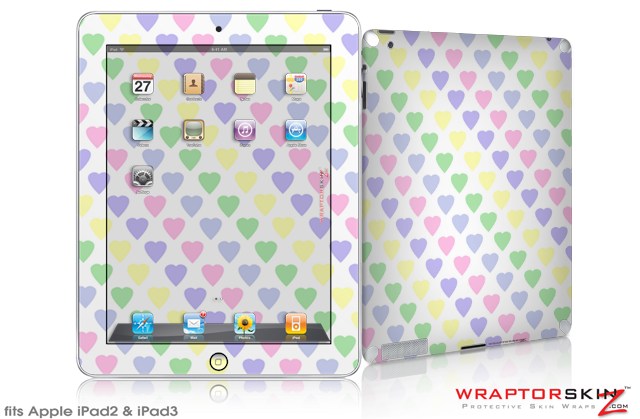 iPad Skin Pastel Hearts on White (fits iPad 2 through iPad 4)