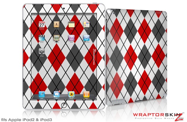 iPad Skin Argyle Red and Gray (fits iPad 2 through iPad 4)