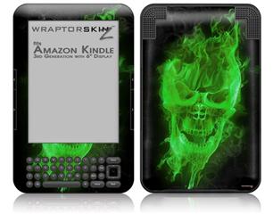 Flaming Fire Skull Green - Decal Style Skin fits Amazon Kindle 3 Keyboard (with 6 inch display)