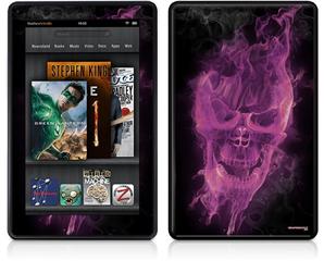 Amazon Kindle Fire (Original) Decal Style Skin - Flaming Fire Skull Hot Pink Fuchsia