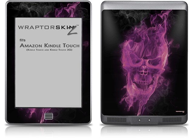 Flaming Fire Skull Hot Pink Fuchsia - Decal Style Skin (fits Amazon Kindle Touch Skin)