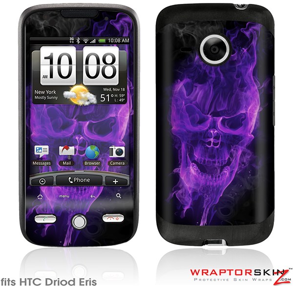 HTC Droid Eris Skin Flaming Fire Skull Purple