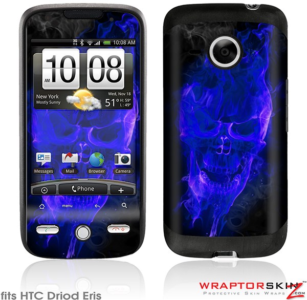 HTC Droid Eris Skin Flaming Fire Skull Blue