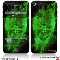 iPhone 4 Skin Flaming Fire Skull Green