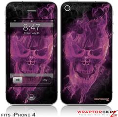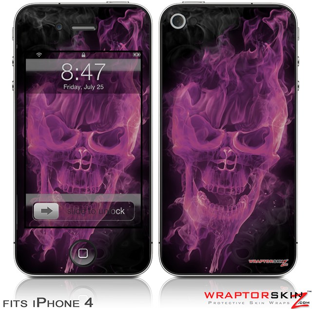 iPhone 4 Skin Flaming Fire Skull Hot Pink Fuchsia