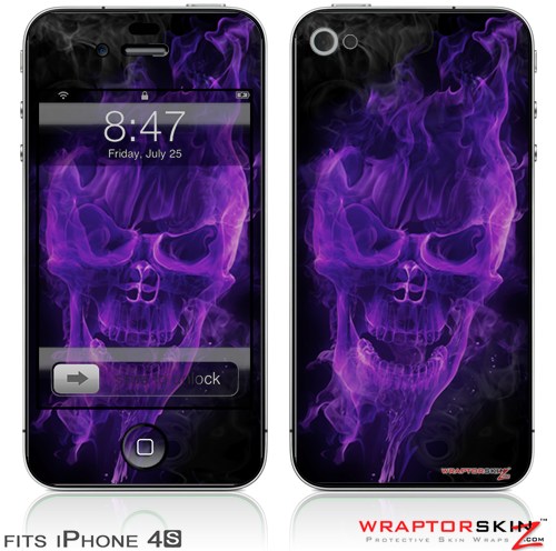 iPhone 4S Skin Flaming Fire Skull Purple