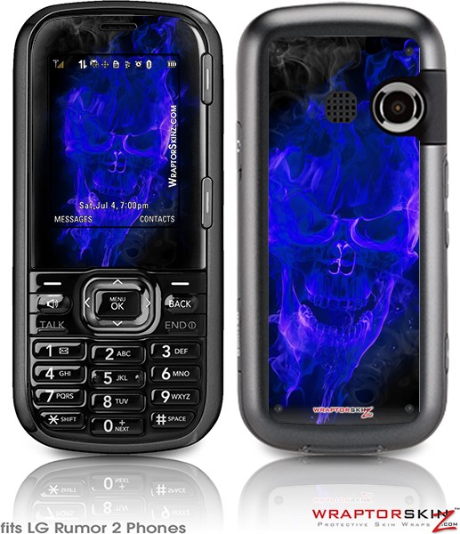 LG Rumor 2 Skin Flaming Fire Skull Blue