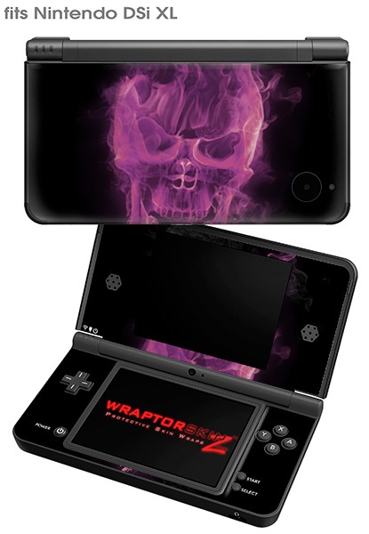 Nintendo DSi XL Skin Flaming Fire Skull Hot Pink Fuchsia